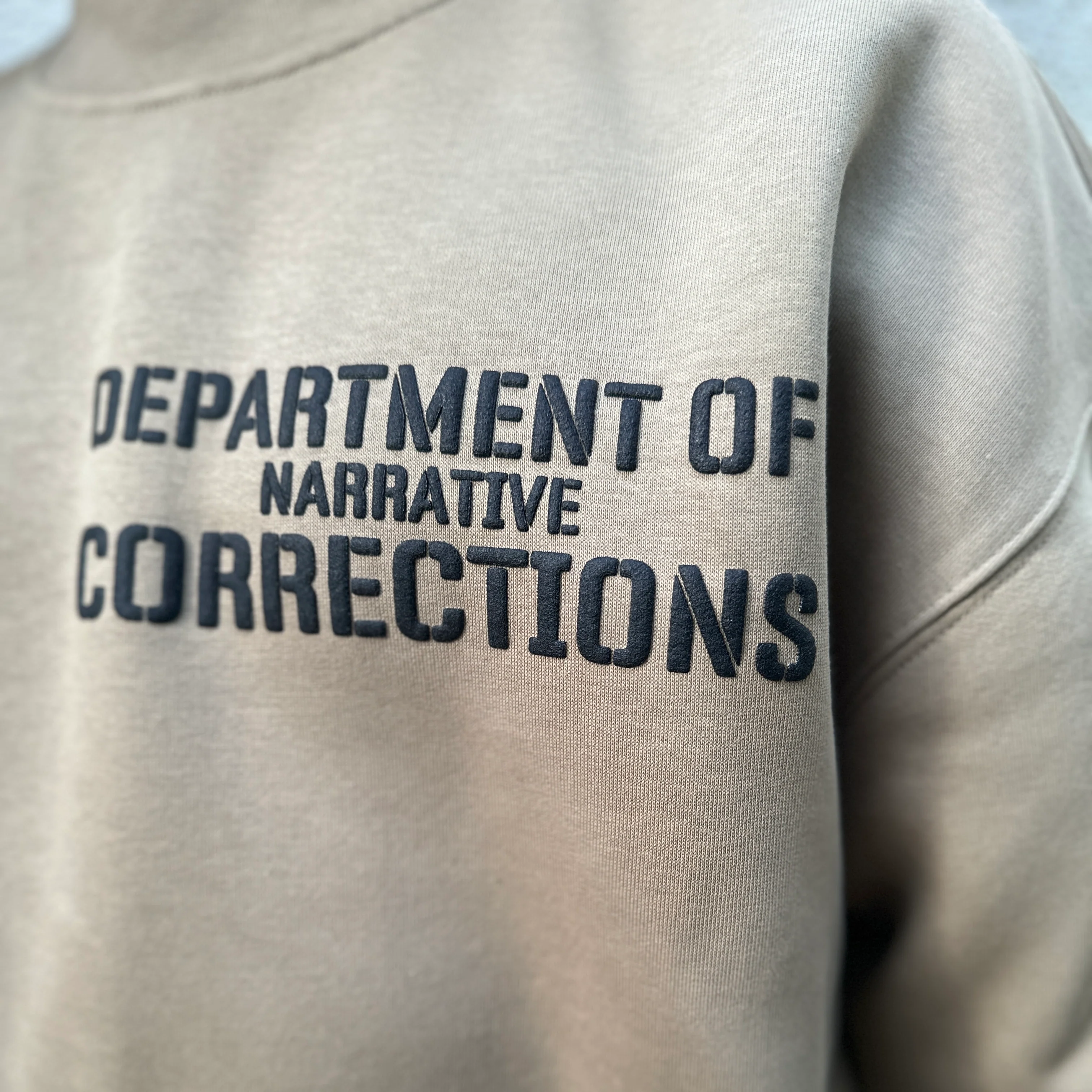 Relaxed Fit, mid weight, 9.4 oz, 80% cotton 20% recycled polyester CVC fleece. Pre-shrunk to minimise shrinkage, pullover crew, drop shoulder, crew neck, sleeve cuff ribbing